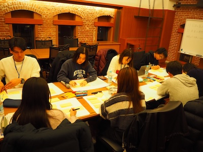 第2回目は、1カ月半後の1月5日。それまでの間にあった出来事や心境の変化について共有すると、「前回の講義で学んだことから、留学予定の国の医療制度について調べてみた」「認知症の祖父に会いにいってきた」「祖母がパーキンソンの初期症状にあって、今後のことを家族で話し合った」などという声が聞かれ、高齢者や医療の問題が自分事になっていることがうかがえました。